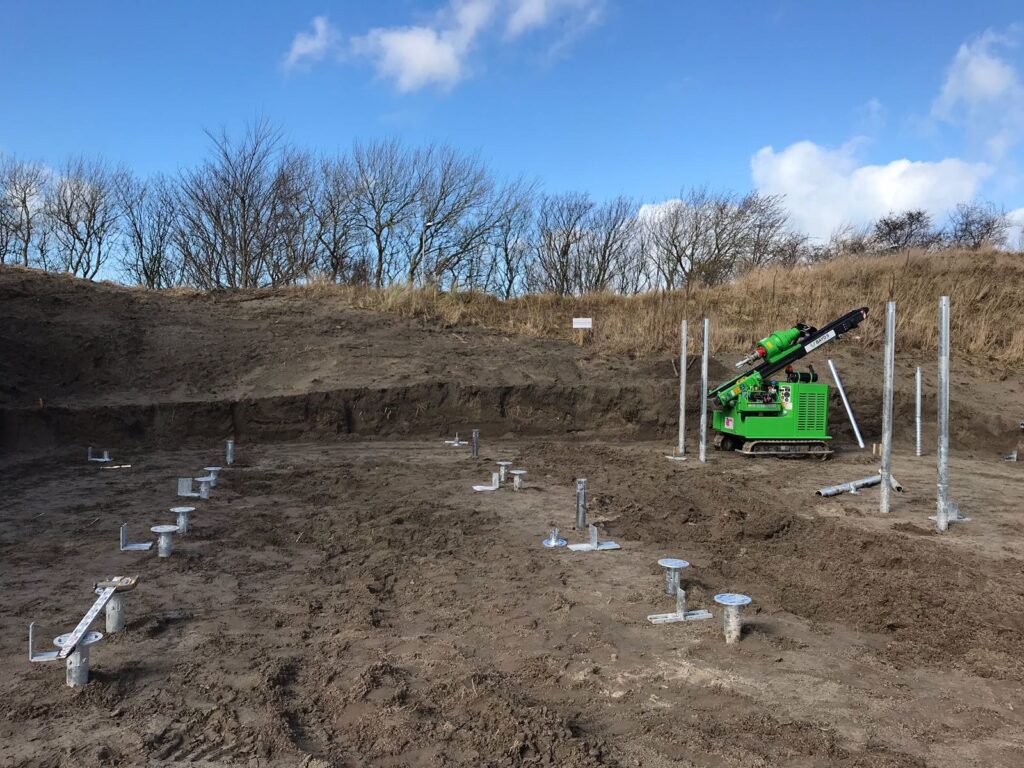 Snelfunderen verzorgde voor deze vrijstaande strandvilla de schroeffundamenten. Een mooi voorbeeld van een functionele werking, een strakke uitstraling en een duurzame fundering om deze mooie natuurlijke omgeving te behouden.